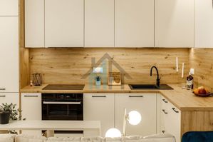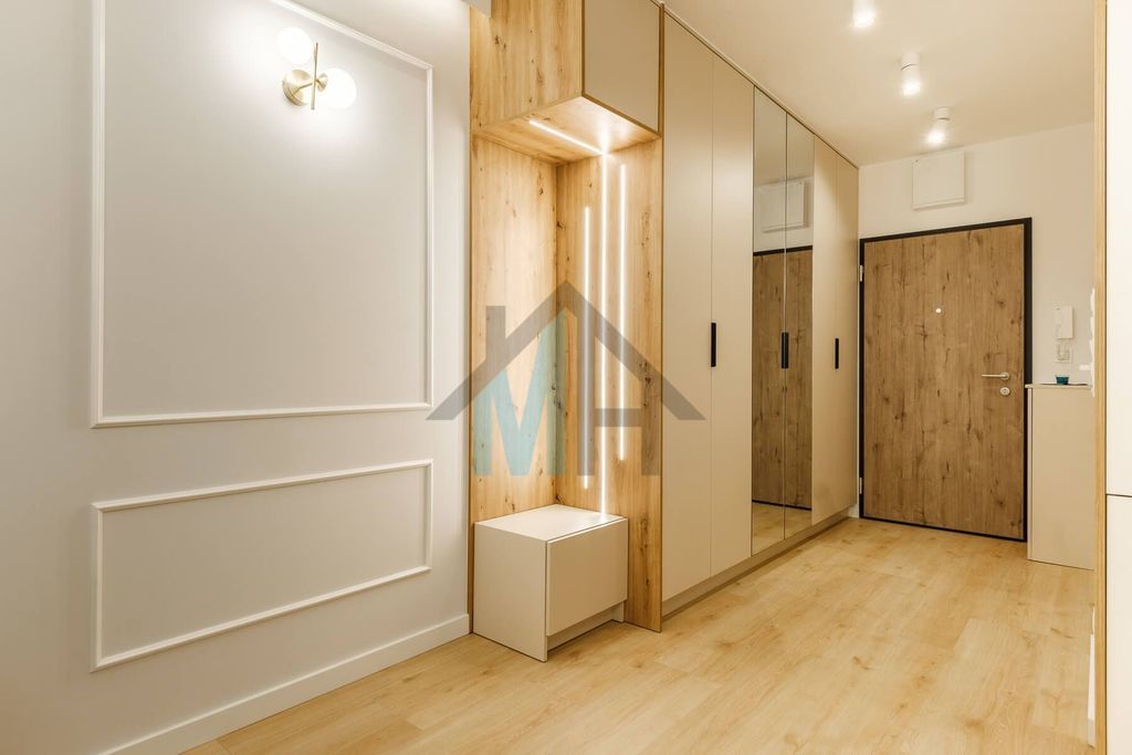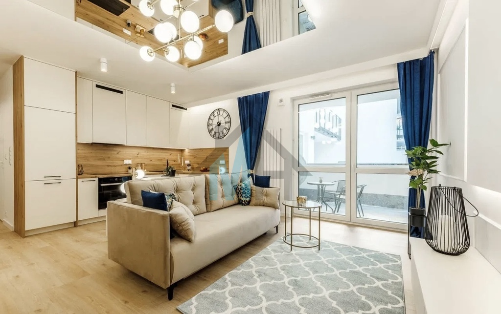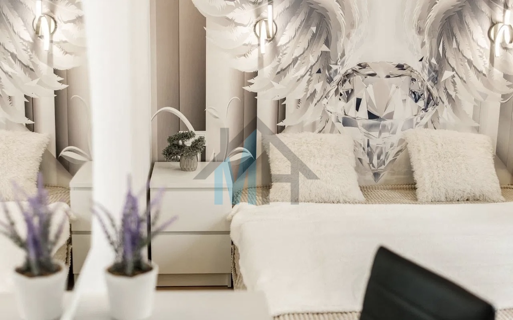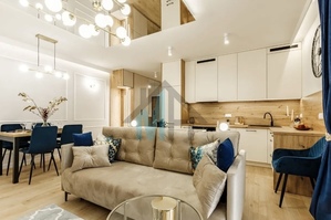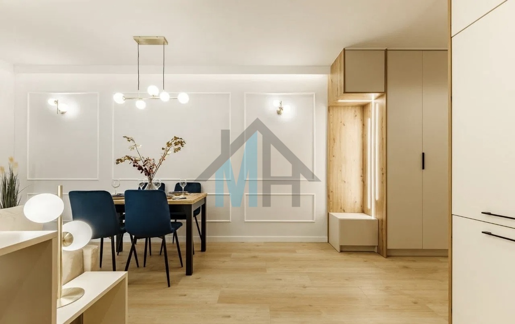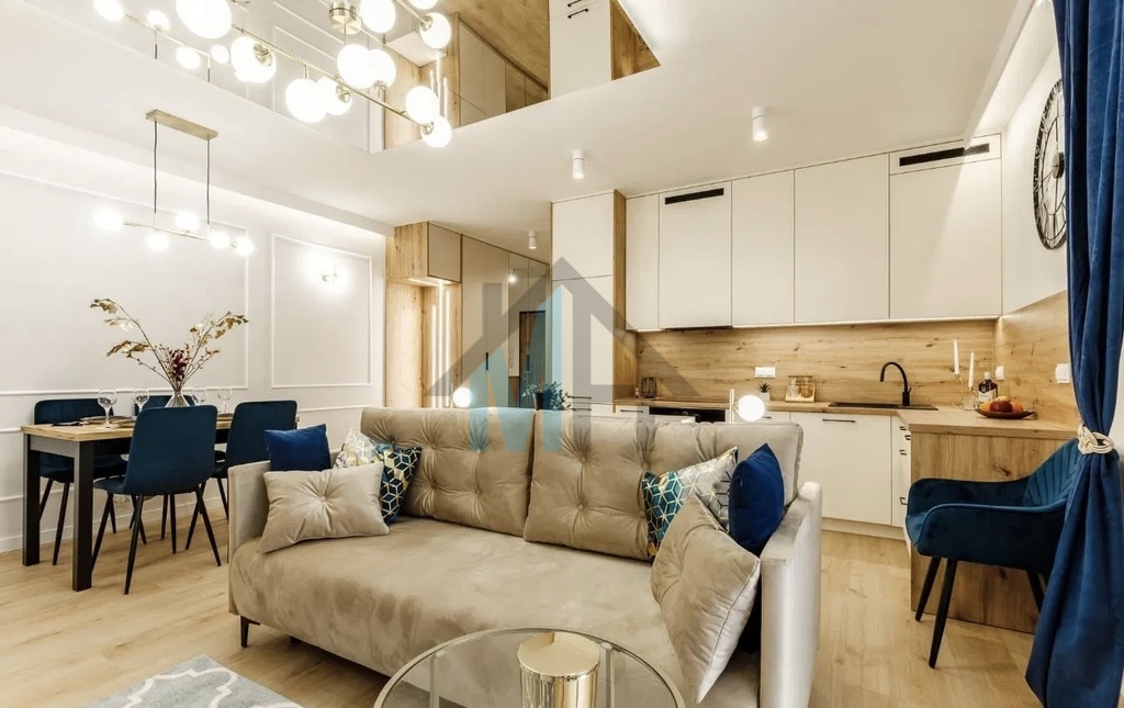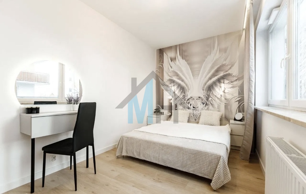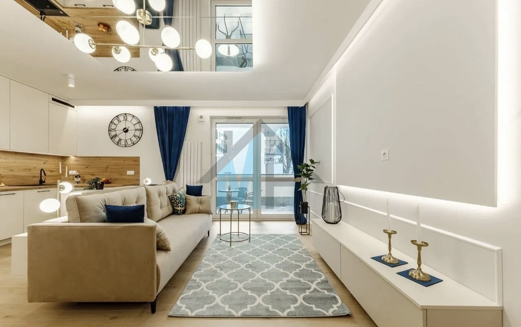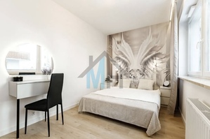 Mieszkanie jest wyposażone w stylowe meble i sprzęt AGD, które są w cenie przedstawionego mieszkania.