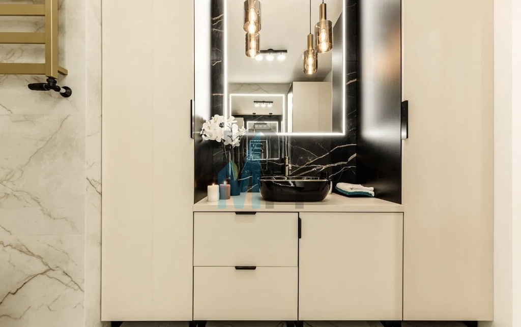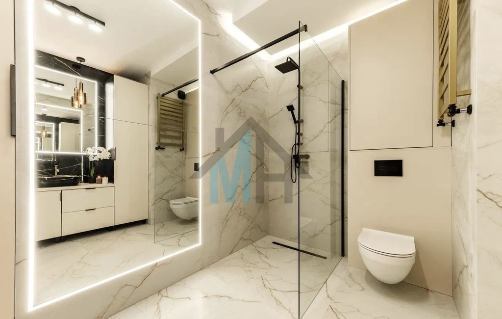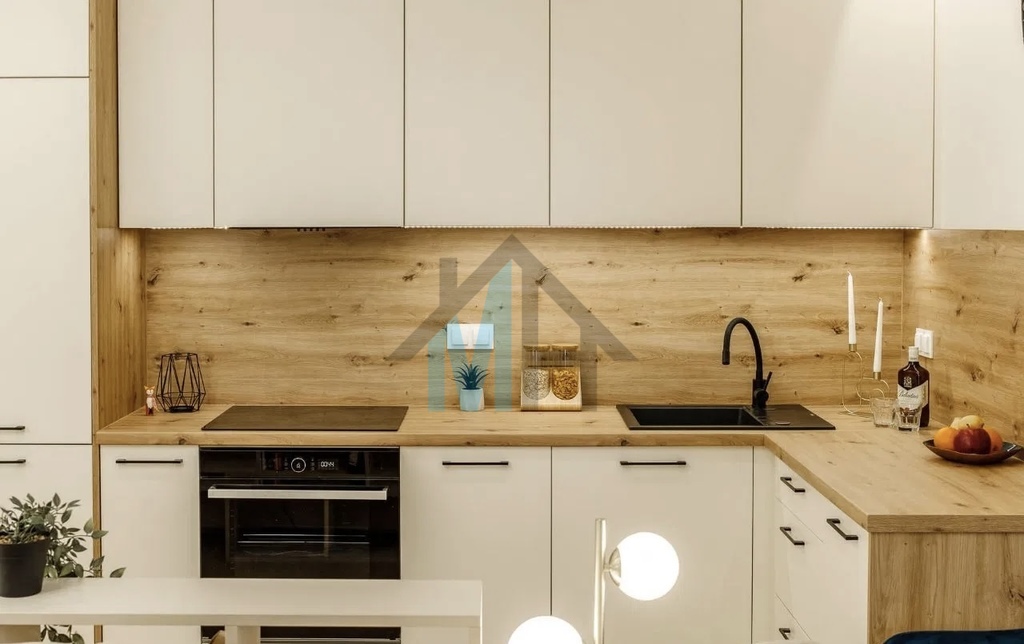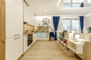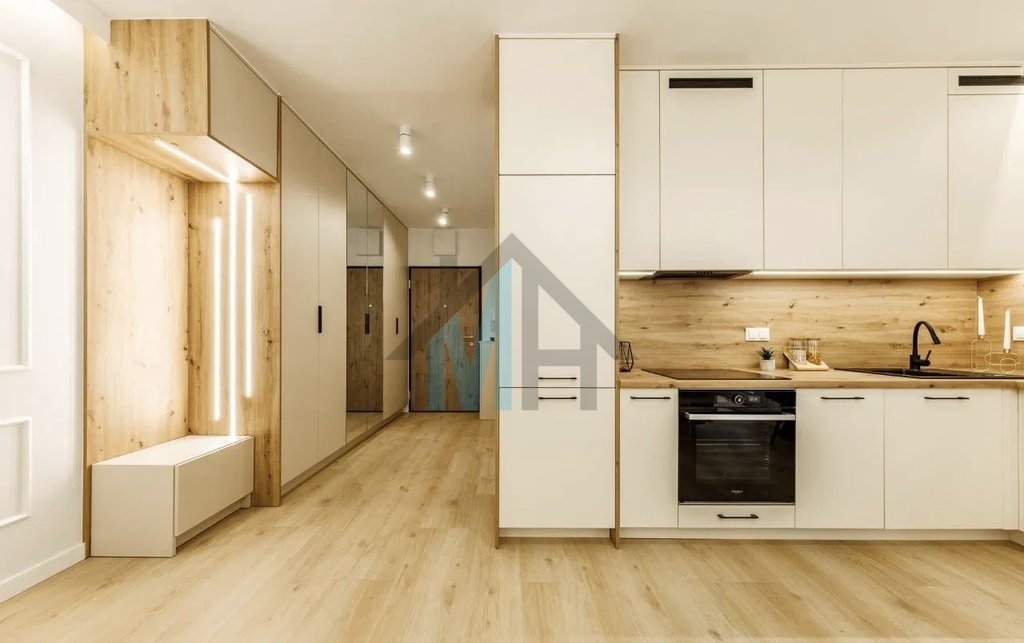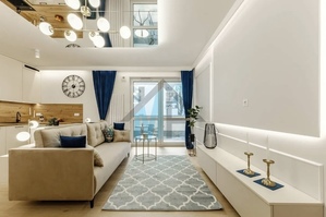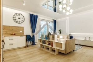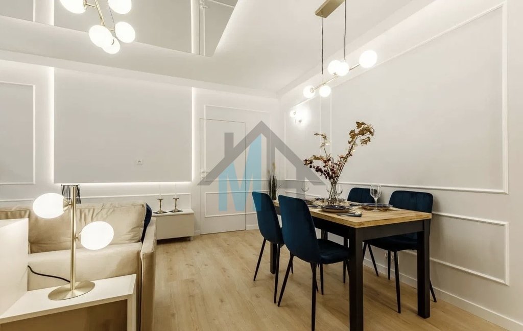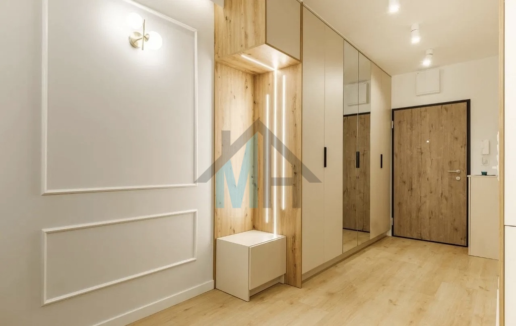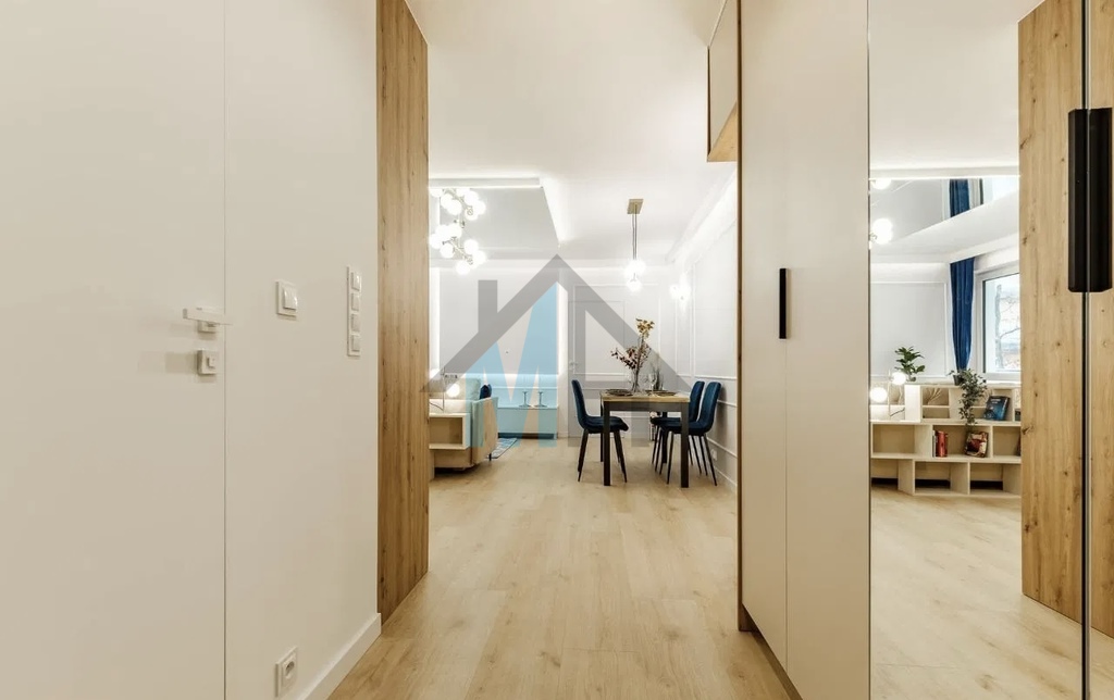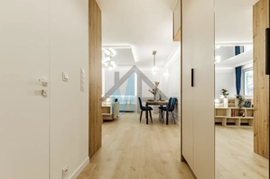 Mieszkanie jest wyposażone w stylowe meble i sprzęt AGD, które są w cenie przedstawionego mieszkania.