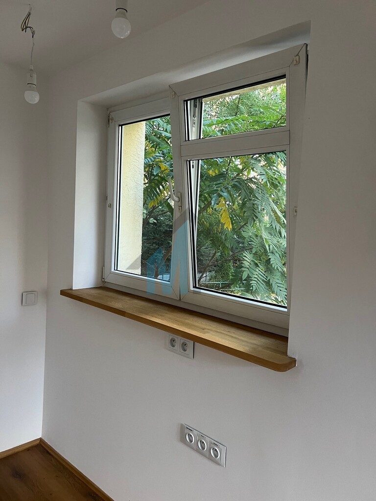 Kuchnia została pozostawiona do własnej aranżacji, natomiast łazienka została wyposażona w nową kabinę prysznicową, umywalkę, sedes. Okna PCV, skierowane na podwórze, dzięki temu mieszkanie jest ciche.