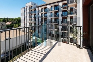 Nowocześnie wykończony budynek z dużym balkonem, oddany został do użytkowania pod koniec 2023 r.