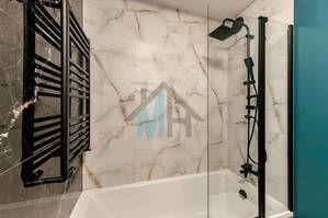 Na podłodze zostały położone panele o wysokiej klasie ścieralności (salon z kuchnią, sypialnie, hol) oraz gres (łazienki i balkony).