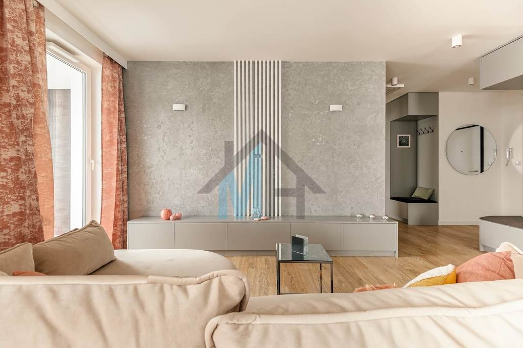 Lokal mieszkalny składa się z przestronnego, ustawnego salonu z aneksem kuchennym o powierzchni aż 45 m2!, dwóch sypialni, dwóch łazienek, garderoby oraz funkcjonalnego holu.